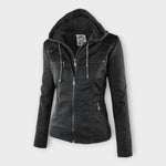 Modern bőrkabát kapucnival és időtlen dizájnnal