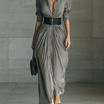 Folyékony dizájnja, a lágy redők és a strukturált öv tökéletes egyensúlyt teremt az erő és a nőiesség között. Ideális azok számára, akik osztályt és magabiztosságot keresnek, nappal és éjszaka egyaránt.