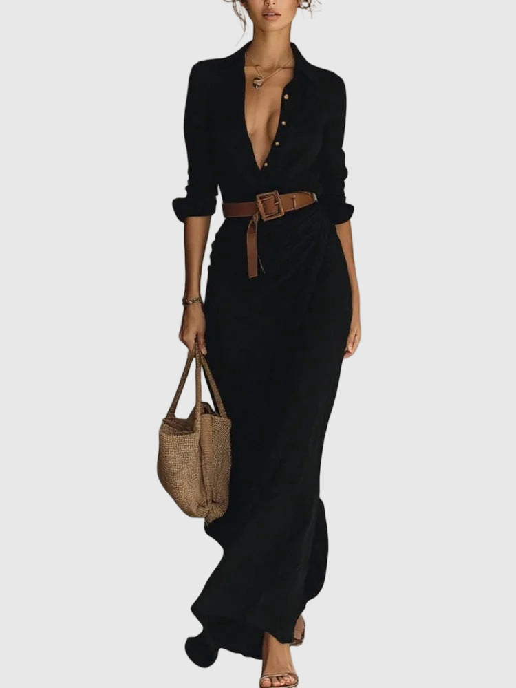 Az Amira | Elegáns Wikkelruha ötvözi a timeless eleganciát a fáradhatatlan nőiességgel. Strukturált revernyakkal, testhezálló fazonnal és lebegő szegéllyel olyan elegáns sziluettet teremt, amely gyönyörűen követi a mozgásodat. Finom, de változatos, ez a ruha tökéletes egy elegáns bulira vagy egy bruncsra a tetőteraszon.